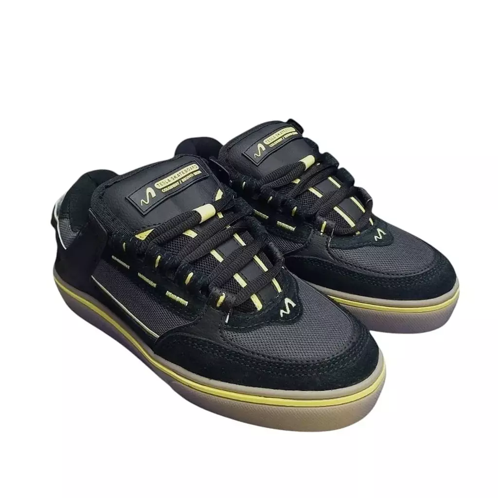 Tênis Tesla Coil o clássico da Tesla ganha uma nova identidade com a assinatura do atleta skatista profissional Bruno Silva. A nova colorway foi escolhida pelo próprio atleta e representa seu estilo único dentro e fora das pistas.